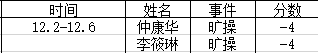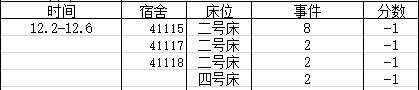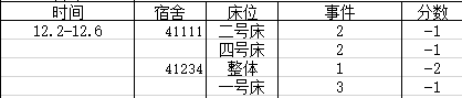 宿舍卫生情况:第一名100分