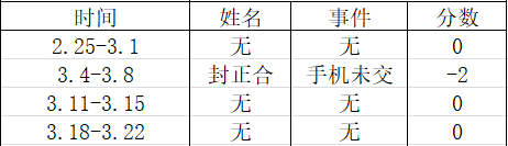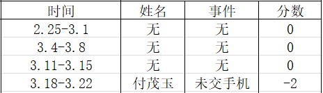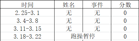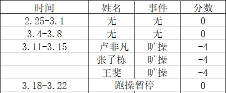 注:上周班级评测台帐经济统计学1704班和数据科学与大数据技术1801班表现良好,经济统计学1701班和统计学1801班情况较差。