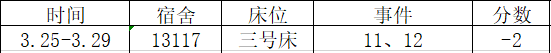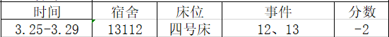 宿舍卫生情况:第三名 91 分