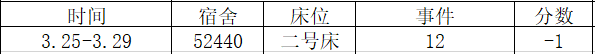 宿舍卫生情况:第一名 98 分