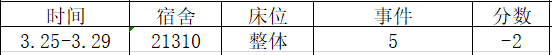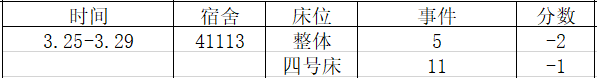 宿舍卫生情况:第一名 100分
