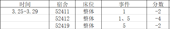 宿舍卫生方面,17级经济统计学1701班宿舍13129扣分严重,18级经济统计学1803班宿舍52412宿舍、经济统计学1801班宿舍52401扣分严重,请相应班级的班团注意。