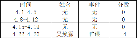 课堂表现方面17级无旷课迟到现象;18级经济统计学1801班吴焕霖旷课,经济统计学1802班宫庆辉、周前浩未交手机,经济统计学1803班毛馨雅迟到,请相应班团注意。