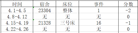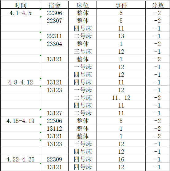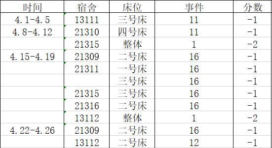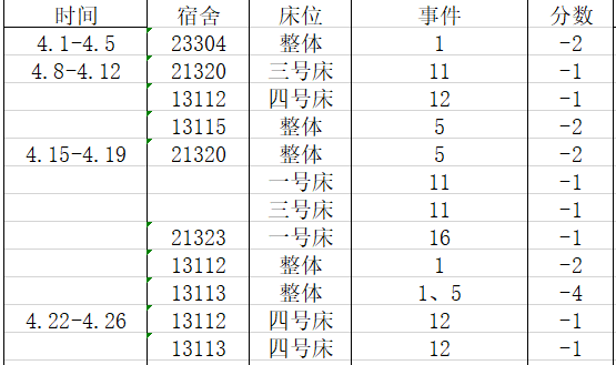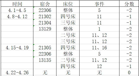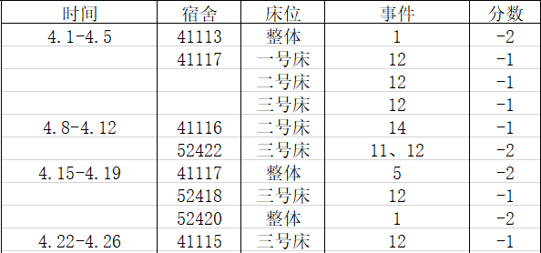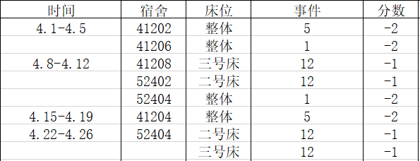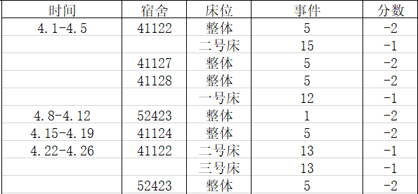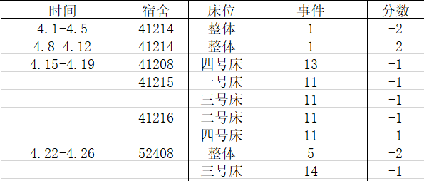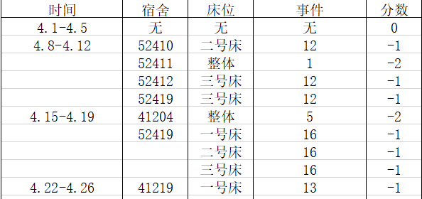 宿舍卫生方面,17级宿舍表现良好,无扣分严重现象;18级经济统计学1802班宿舍52408扣分严重,请相应班级的班团注意。