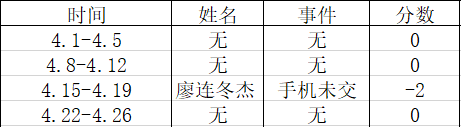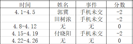 望各班就上周出现的问题认真整改,表现好的班级继续保持。