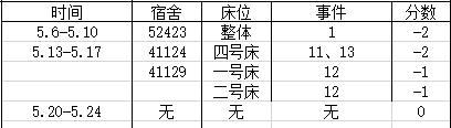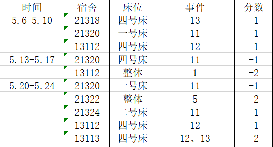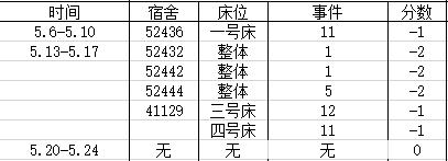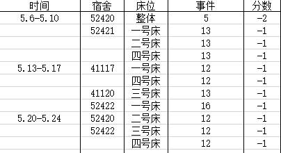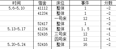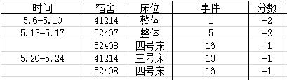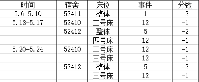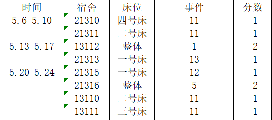 宿舍卫生情况:第五名 80分