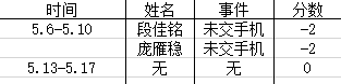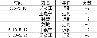 早操出勤情况:第三名 100分