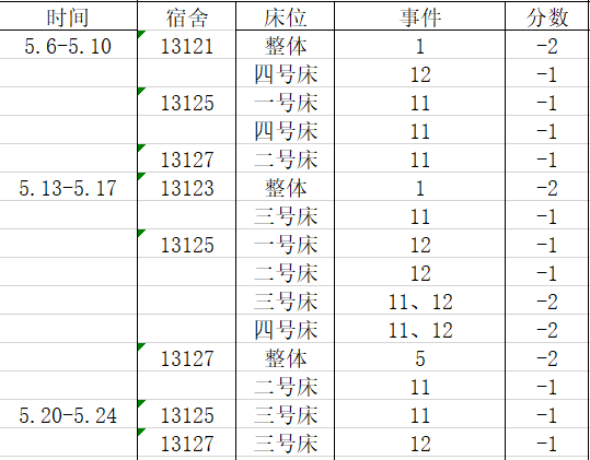 宿舍卫生方面,17级宿舍均表现良好,18级经济统计学1803班宿舍52412扣分严重,请相应班级的班团注意。