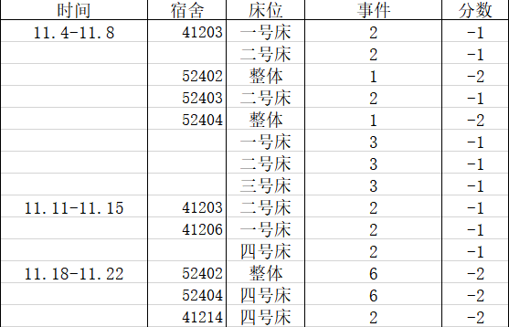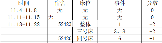 宿舍卫生情况:第六名74分