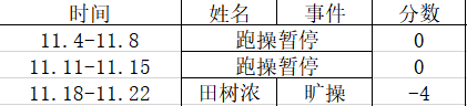 跑操操出勤情况:第一名100分