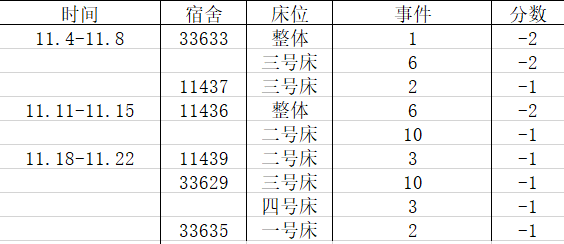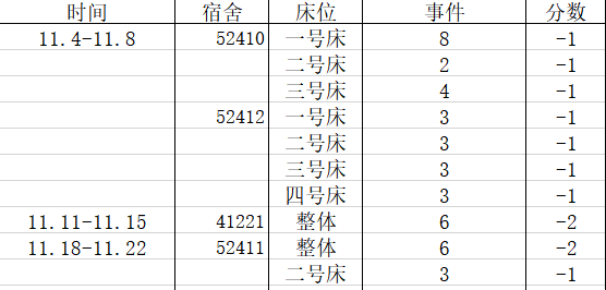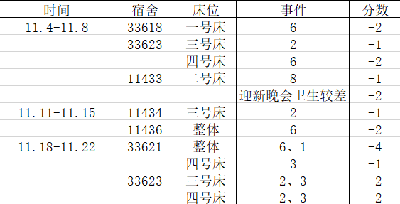 宿舍卫生情况:第六名95分