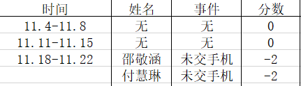 课堂表现方面,18级经济统计学1801吕中健迟到,19级统计学1901邵敬涵、付慧琳未交手机。望相应班团引起重视。