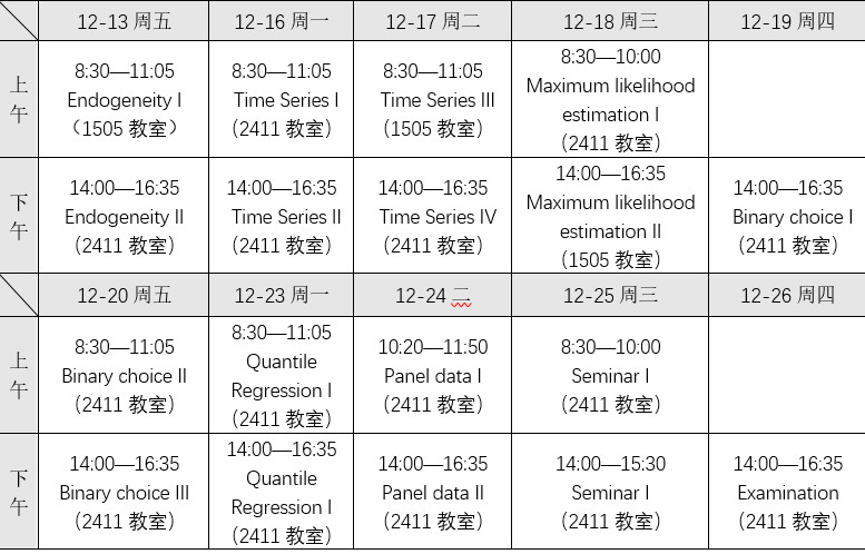 统计学院国际化课程《中级计量经济学》课程表