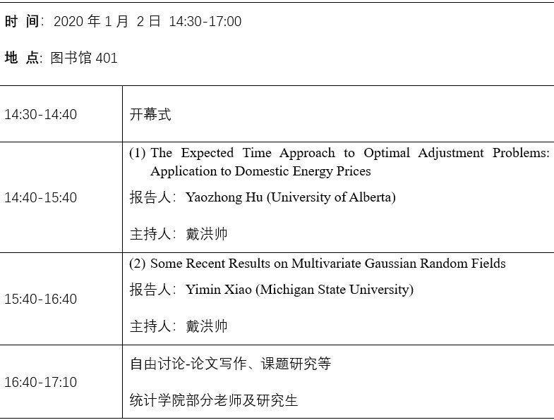 报告人简介:肖益民教授是美国密歇根州立大学Foundation Professor,并于2012年度入选“长江学者奖励计划”讲座教授(北京理工大学)。肖益民教授主要从事随机场及随机偏微分方程、分形几何、位势理论、随机场的极值理论、空间统计、非参数估计方面的研究,取得了一系列具有国际先进水平的重要成果,促进了随机场理论在其它领域中的应用。肖益民教授系美国数理统计学会会士(Fellow of the American Mathematical Statistics Society)。现担任SCI杂志《Statistics and Probability Letters》共同主编,同时还是SCI杂志《Science in China, Mathematics》,《Illinois Journal of Mathematics》的编委。