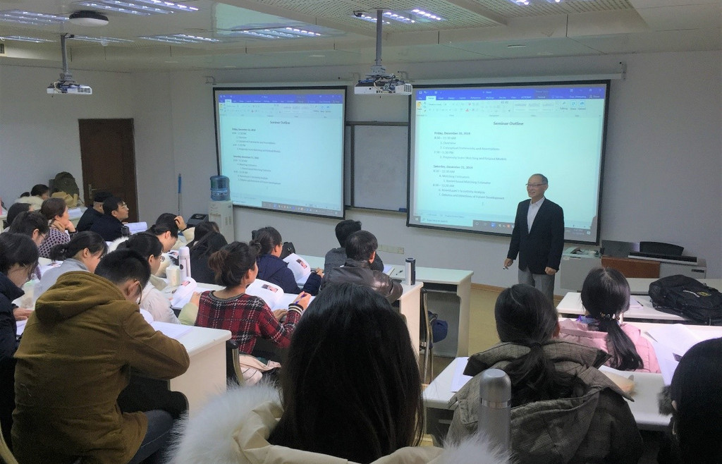 12月20日和21日,由研究生院和统计学院联合举办的专题课程《Propensity Score Analysis》(倾向值分析)在学景酒店MBA204教室圆满结束。课程由现任美国华盛顿圣路易斯大学Frank J. Bruno杰出教授,西安交通大学长江学者讲座教授,美国社会工作社会福利科学院院士郭申阳教授主讲。来自统计学院、会计学院、经济研究中心等院部的80余位老师和研究生聆听了两天的课程。开课前,校学科办主任马玉林教授、统计学院执行院长李国锋教授分别对郭教授来我校开设研究生短期课程表示欢迎与感谢。