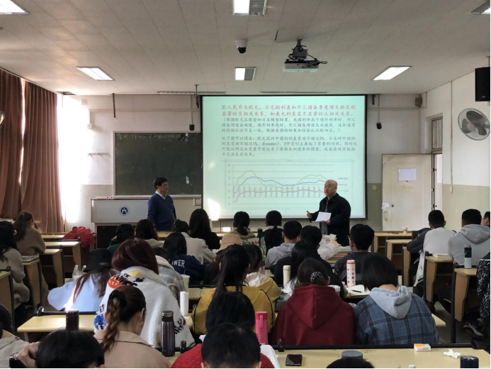 陈敏教授首先以统计学研究与数学研究有何不同为引子,指出统计学研究是一门研究如何有效地收集整理分析数据并形成知识的科学与艺术,并从实例研究的定义、方法、重要特征、研究步骤以及优劣判断等五个方面向大家详细介绍了什么是应用统计实例研究;接着以外汇储备规模测算为实例,向同学们讲述如何进行应用统计研究的详细过程。陈敏教授向同学们介绍了问题研究的背景,讲述了应用统计研究中的变量分析与选择、实际数据处理与分析、模型构建与选择、模型解释与检验、组合预测权重确定、基于情景分析的组合预报、预报结果等内容。报告重点强调了外汇储备规模测算中的欧元区模型、日本模型和美国模型的经济实践验证,向同学们说明了不同经济体有独特的经济运行规律及其对我国外汇储备影响的差异性。最后,陈敏教授希望同学能将自己在学校里所学到的统计学知识与方法积极应用到今后所从事的行业中,做好应用统计研究。