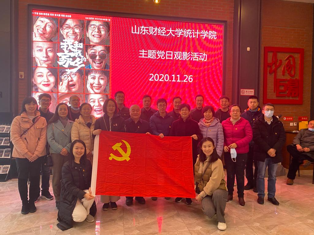 2020年11月26号,为深入学习宣传贯彻党的十九大精神,进一步提高党员对十九大内容的解读,统计学院组织教职工及统计学院经济统计系党支部、数据科学系党支部、数理统计系党支部、数理统计系党支部共计三十余人,组织开展观看电影《我和我的家乡》主题党日观影活动。
