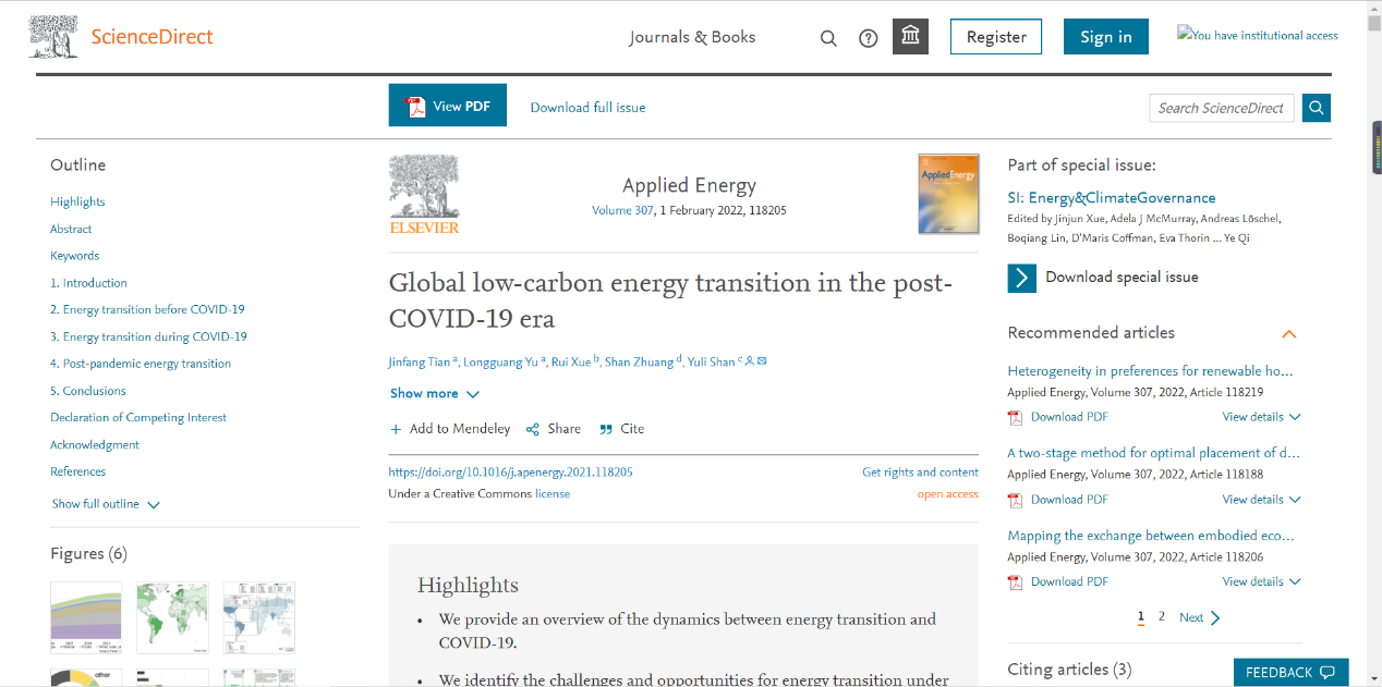 近日,统计学院田金方教授以第一作者在国际能源领域顶级学术期刊《Applied Energy》2022年第307卷上发表题为“Global low-carbon energy transition in the post-COVID-19 era”的论文(DOI:10.1016/j.apenergy.2021.118205)。Applied Energy同时位于JCR和中科院国际SCI期刊的Q1分区,最新影响因子为9.746,系我校A1类期刊。