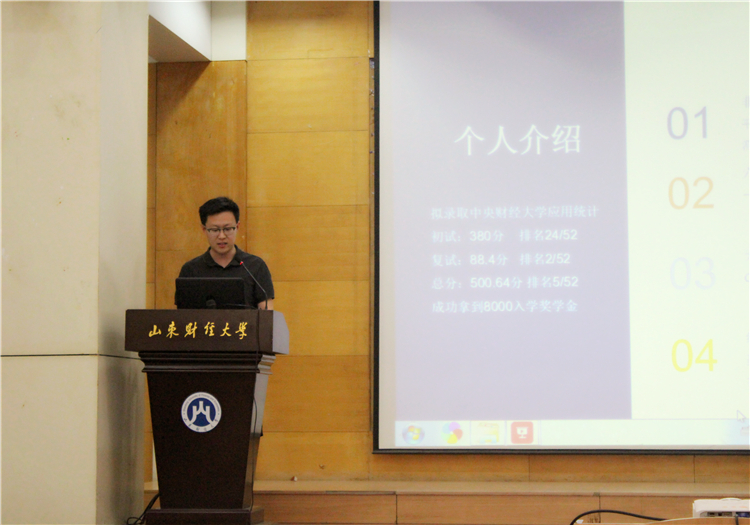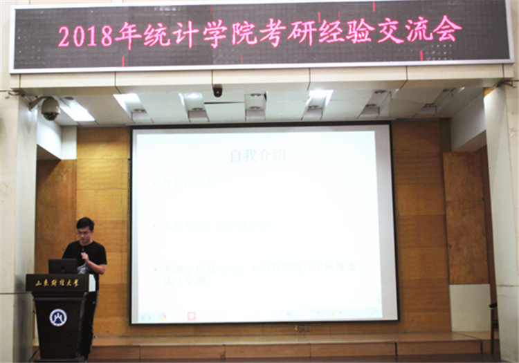5月25日下午,统计学院在燕山校区3号报告厅成功举办考研经验分享会。本次经验分享会邀请到了高联考研机构的许总以及2014级优秀考研毕业生——考入上海财经大学硕博连读的高天,考入北京师范大学应用统计专硕的张子哲与考入中央财经大学应用统计专硕的崔基瑞。统计学院党委副书记赵世民与2015级全体学生共同参加了本次考研经验交流会。