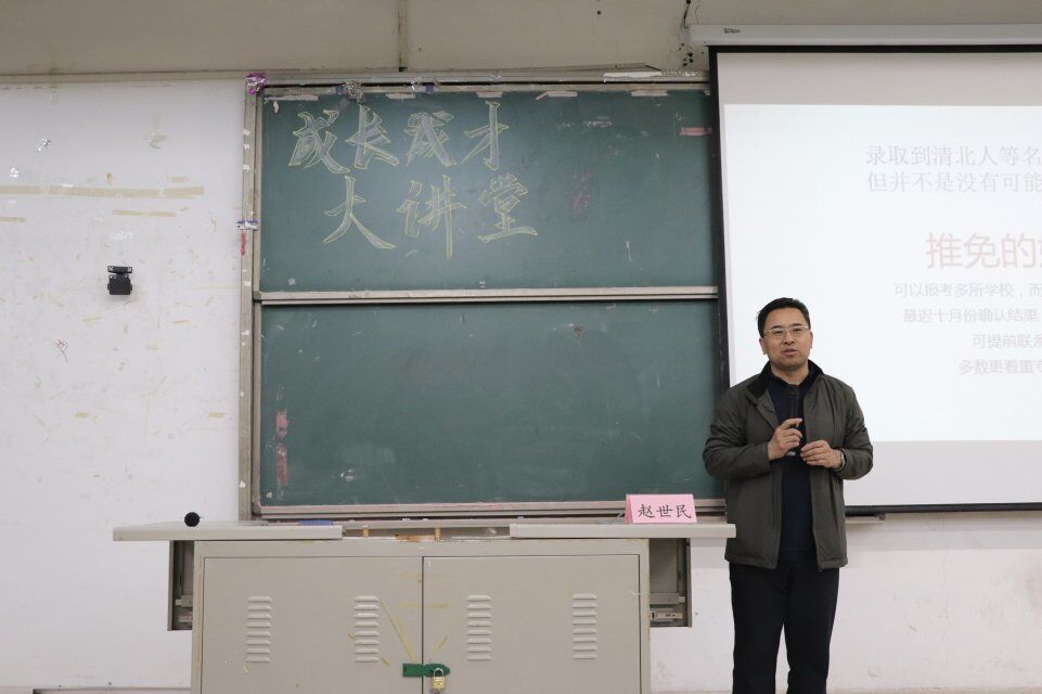 为更加明确学生在校学习方向,统计学院于4月23日晚19:00在圣井校区B5-201教室举行了成长成才大讲堂——“考研方向的选取与准备”讲座。本次讲座由统计学院党委副书记赵世民主持,2014级考研优秀学生代表赵姝洁、邱子迅、崔基瑞主讲。2016、2017级全体学生参与本次讲座。