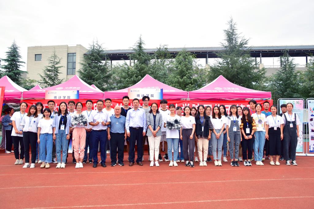 为活跃气氛,缓解报道途中的枯燥,学院为大家准备了精彩的歌舞节目,不仅有吉他弹唱,还有热情洋溢的啦啦操表演,展现了统计学院的青春风采。随后,统计学院党委书记郑磊、执行院长李国锋、党委副书记赵世民及19级辅导员许薇老师来到迎新帐篷前,热情的同新生及家长交流,并关切的询问新生的感受,为家长答疑解惑,消除了新生初来乍到的陌生感。学校的领导也对此次迎新活动高度重视,亲临学院新生报到处,对我院迎新工作进行了悉心指导。