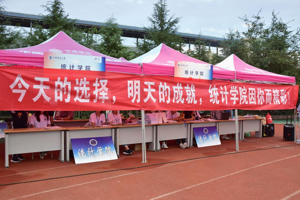 “若有知音待采时,统院不辞待君至。”知音待采,我待君至。当这面签名墙再次出现在圣井校区东运动场上时,在晨光熹微中,统计学院第二天的迎新工作也正式拉开了帷幕。