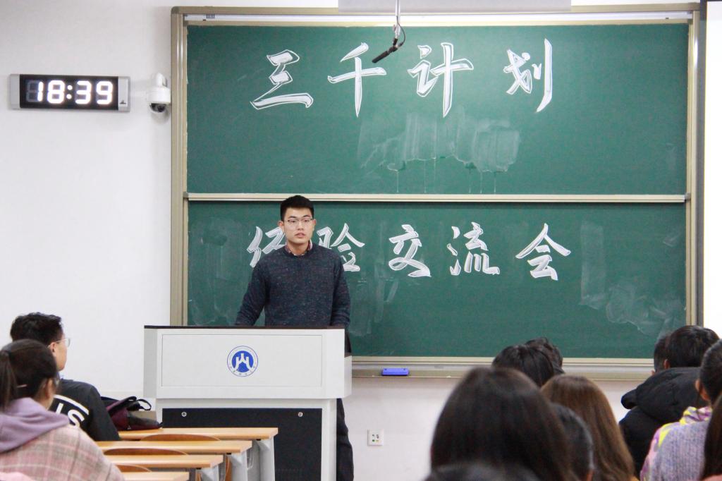 为使统计学院2019级学生深入了解我校重点社会实践活动“三千计划”,我院于2019年11月28日晚6:30在圣井校区6320教室举行了“三千计划”经验交流会。本次会议由统计学院18级秘书处陈治颖同学主持,18级“三千计划”优秀队长张宗宇、陈湘君同学主讲,19级部分学生参加。