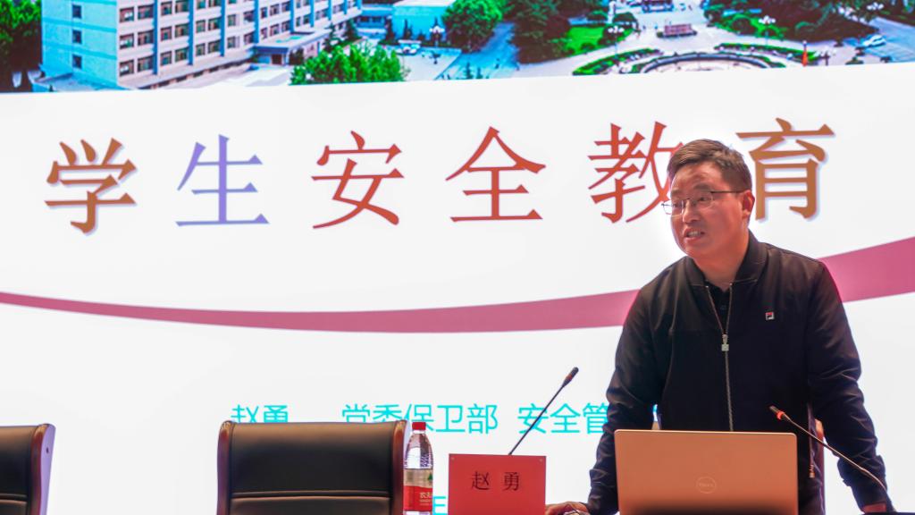 第二部分由赵勇副处长为新生进行安全教育。赵勇副处长指出,近年来电信诈骗、裸贷、套路贷、消防安全事故等在大学校园内频发。赵勇副处长通过列举十种常见的诈骗案例帮助同学们识别电信诈骗,并提出相应的防范措施。然后,赵勇副处长从警示、防火、灭火、逃生四个篇章为同学们全方位、多层次地讲解了消防安全知识,希望同学们注意消防安全隐患,不断提升安全防范意识和自我防护能力。