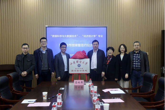 最后,郑磊和李军分别代表双方在协议书上签字并共同为“山东财经大学统计学院实习实训基地”揭牌。签约仪式的圆满完成,拉开了双方友好合作的序幕,双方对合作前景充满期待与信心,期望更好地实现教学与实践相结合,培养高质量有用人才,充分发挥统计学学科价值。