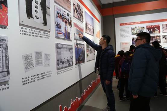 本次展览主要包含四部分内容,首先是对山东教育走向健康发展过程的介绍,回顾了1978至1985年间山东教育改革的历史;其次介绍了“科教兴鲁”战略政策最终在山东实行的历史沿革;接着通过展示山东各类学校特色活动的图片,充分展现山东教育事业进入了大发展时期的蓬勃状态;最后展示山东省委领导考察全国各地学校的图片,表明了山东教育事业进入了新时代。展览全程由馆内的志愿者生动讲述每张图片背后不为人知的精彩故事,同学们听得津津有味,相互讨论彼此的感受及想法,由此对山东教育事业的历史及发展有了更深层次的理解。