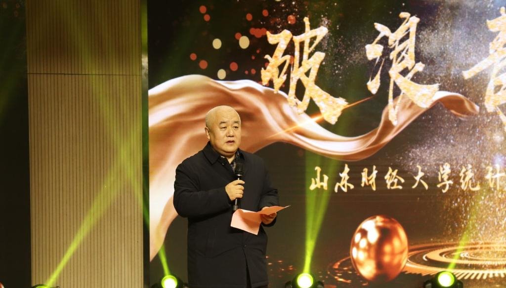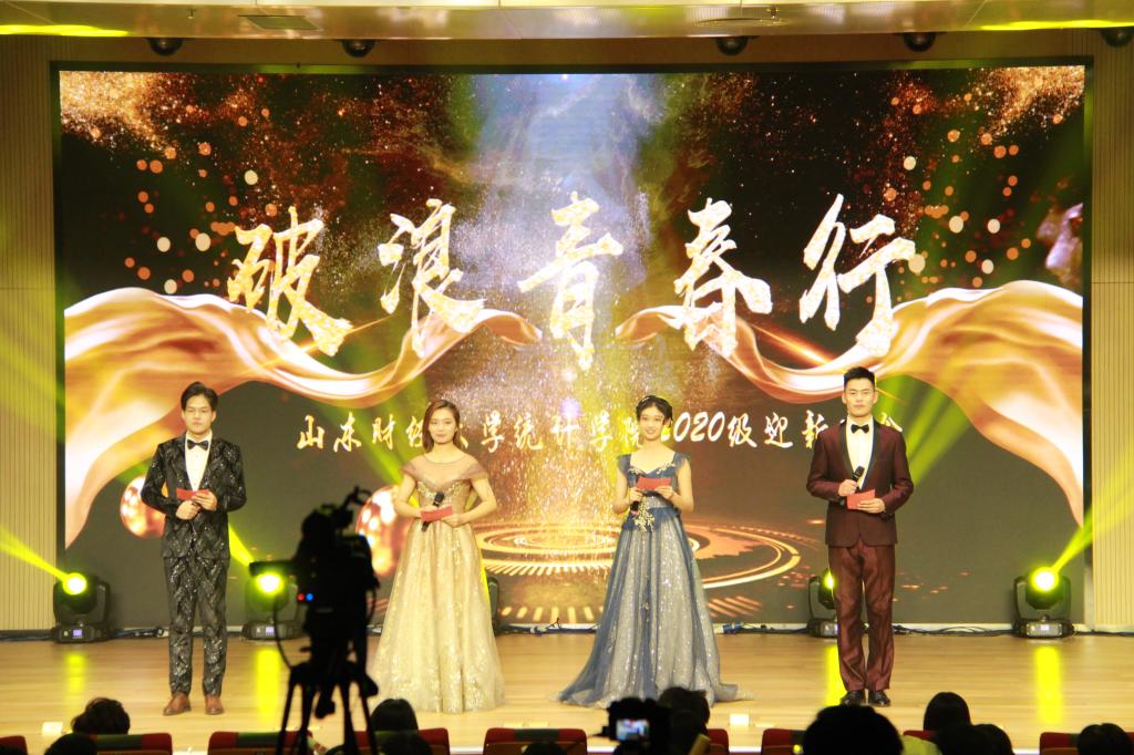 山东财经大学统计学院“破浪青春行”2020级迎新晚会于11月25日19:00在圣井校区文化活动中心报告厅隆重举行。学校相关职能部门领导、各学院领导、学院领导班子、部分教师代表与研究生代表、各学院学生会代表、20级新生欢聚于此,并有近四万人于网络直播平台同步观看,共同欣赏这场精彩纷呈、美轮美奂的视觉盛宴。